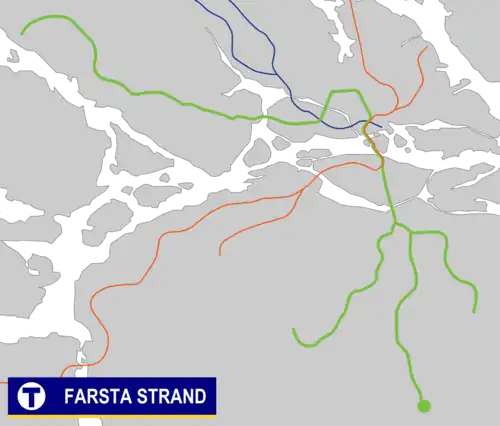 Farsta strand metro station is on the green line of the Stockholm metro, located in Farsta strand, Söderort. It is the end station for line 18. The station was opened on 29 August 1971 as the southern terminus of the extension from Farsta.[2] The distance to Slussen is 10.4 km (6 mi).