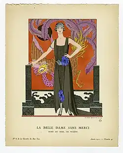 George Barbier fashion plate titled La Belle Dame sans Merci, plate 47, from Gazette du Bon Ton, 1921, issue 6