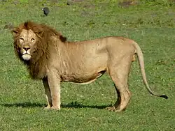 There are also larger artiodactyl species, such as the Cape buffalo, common eland and the giraffe. These are preyed upon mainly by lions.