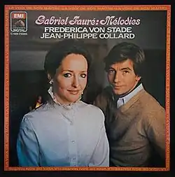 Gabriel Fauré: Mélodies is a 54-minute studio album of eighteen of Fauré's art songs performed by the mezzo-soprano Frederica von Stade with piano accompaniment by Jean-Philippe Collard.[1] It was released in 1983. A second, 57-minute version of the album, released in 2011, includes a bonus track in which von Stade sings the Chanson de Mélisande from Fauré's incidental music for Maurice Maeterlinck's play Pelléas et Mélisande, accompanied by the Orchestre national du Capitole de Toulouse under the direction of Michel Plasson.