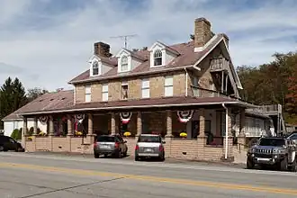 Fayette Springs Hotel, also known as Stone House Restaurant, is a historic inn and tavern located at Wharton Township, Fayette County, Pennsylvania. It was built about 1822, and is a 2+1⁄2-story, 5-bay, brick building with a center hall floor plan with Federal-style detailing. It has a 2+1⁄2-story, kitchen ell. It was built by Congressman Andrew Stewart (1791-1872). It served as a stop for 19th-century travelers on the National Road.[2]