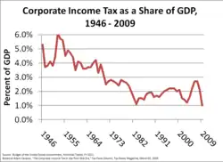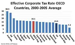 | Table of corporate income taxes as a percentage of GDP for the US and OECD countries, 2008[9][10] | |||
