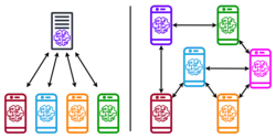 In the decentralized federated learning setting, the nodes are able to coordinate themselves to obtain the global model. This setup prevents single point failures as the model updates are exchanged only between interconnected nodes without the orchestration of the central server. Nevertheless, the specific network topology may affect the performances of the learning process.[3] See blockchain-based federated learning[4] and the references therein.