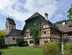 Feldkirch Sickhouse (Siechenhaus), Feldkirch, Vorarlberg, Austria, is listed an Austrian monument of cultural significance. The group of two buildings was erected in the late 16th or early 17th century. Far outside the city of Feldkirch a leper house was founded in the 14th century. The former building might be destroyed in the year 1557. Since April 1985 a youth hostel is located in main building. The outhouse is now a shelter for the bus stop and the entrance for an underpass of the Reichsstraße.