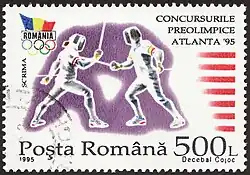 ![]() Romanian stamp commemorating 1996 Olympic fencing | |||||||||||||