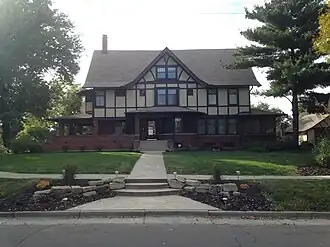 Located within the Mount Emerald and Capitol Additions District, the Reese House was designed by Fiske and Meginnis in 1907.[5] The Reese House was designed with false-timber work and stucco and large overhanging eaves over the porches placing it into the Tudor-Revival/Prairie-Style category that Fiske & Meginnis were known for especially in their residential projects. This residence was designed for Manoah Bostic Reese and his family who was the chief justice of the Nebraska Supreme Court and also the Dean for the University of Nebraska College of Law.
