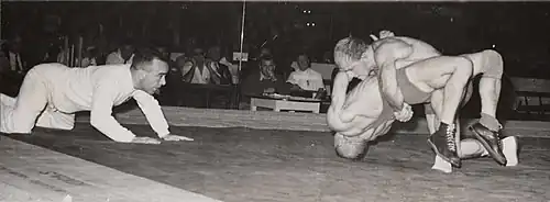 Tóth (bottom) vs. Olle Anderberg at the 1948 Olympics