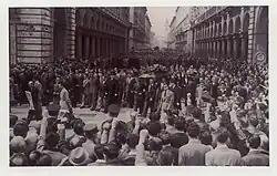 Returning to France he was greeted by entry into the war and the following year he found himself fighting against fascism allied with the Nazis. He was arrested in 1943 by the Gestapo while trying to cross the border and was locked up in the Nuove of Turin, from where he was freed by a popular assault. In Turin, a National Front of united action had been clandestinely reconstituted together with communists, Catholics and shareholders and therefore the Socialist Regional Committee operated there. In those days Amedeo took part in an important meeting to deal with the situation in Badoglia, but was arrested again, after having been appointed city organizational secretary. He was taken to Susa prison, but then released; a bounty of half a million lire was hanging on him, forcing him back into hiding. His political positions continued to be consistent with those of exile.[2] His last period of life was dedicated to organizational work, during the electoral campaign that would have seen him among the elected representatives of his constituency without being able to subsequently see his nation reborn on new foundations. He died on 18 June 1946 from a sudden illness, probably due to the wear and tear of the experiences he had lived.[3] Given the strong contribution he made in the anti-fascist struggle, on the day of his secular funeral, one of the first to be celebrated after the Second World War, an immense crowd attended to pay homage to him. Not only people close to the socialist party, but also people grateful for the value brought in such a difficult moment for Italy.