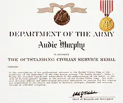 - ^ Dept. of the Treasury. "Medal of Honor with Audie Murphy". U.S. National Archives and Records Administration ARC Identifier 5727074. Retrieved 10 October 2013.