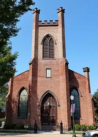 First Baptist Church is a historic Baptist church affiliated with the Cooperative Baptist Fellowship located at Middle Street and Church Alley in New Bern, Craven County, North Carolina. It was built in 1848, and is a rectangular brick church building in the Gothic Revival style. It features a two-stage, turreted entrance tower. Its brickwork is laid in Flemish bond.[2]