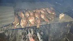 In some areas, a pair of canoes joined together by planks forming "a catamaran" is used to fish silverfish. A kerosene paraffin lamp, attached to the middle of one of the planks, is lit. Another lamp mounted on a small raft connected to the canoe by a rope of about 15 m long, is also lit and slowly pulled towards the canoe. This attracts the fish to the net. The fish are trapped in the net and the lights extinguished.