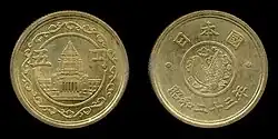 - ^ The third and final gold coin design was also used during Taishō, and Shōwa's reign.