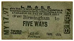 LMS Birmingham to Five Ways train ticket, issued on 17 May 1927