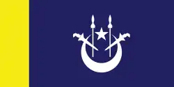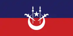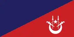 | Design | A red field defaced with a white crescent and star and two white kris and spears. |