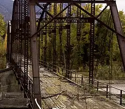 The Flathead River Bridge otherwise known as the Red Bridge is an abandoned steel truss bridge located at the south end of 4th Ave in Columbia Falls, Montana.[1] The bridge was added to the National Register of Historic Places in 2010.[2]