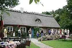 In 1927, Alexander and Anna Lundgren bought a timber framed fisher's cot built 1732 in Skäret. They were farmers from Allerum and renovated the cottage to turn it into a holiday home for the family. During the difficult 1930s, in order to keep the summer cottage, the oldest sister Greta opened the café. She got help from Rut, who was a baker's apprentice, and the younger sisters.[3] The business expanded quickly and in 1939 they built a separate bakery.[4] Tragically Ebba succumbed to tuberculosis and died in 1939.[5]