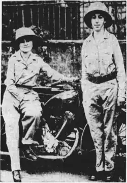 On 11 December 1934, Florence Blenkiron and Theresa Wallach set out from Crown House, Aldwych in London to Cape Town, South Africa, on their 600cc single-cylinder Panther motorcycle named "Venture" with sidecar and trailer, seen off by a crowd which included Lady Astor, the first woman MP, and the High Commissioner of what was then South Rhodesia.[1] The event was widely reported in the press, as was their progress on the journey.