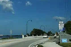SR 732 westbound past Frank A. Wacha Bridge in Jensen Beach