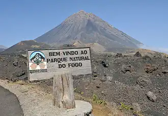 Fogo is a protected area located on Fogo Island in Cape Verde, an island nation in the central Atlantic Ocean.[1] The park was officially established on 24 February 2003, and is one of Cape Verde's ten natural parks.[2] The protected area stretches for 84.69 km2 (32.70 sq mi), accounting for 17.8% of the total area of the island.[3][4] About 50% of the park lies within the municipality Santa Catarina do Fogo, 28% in municipality of Mosteiros and 22% in São Filipe.[1] The natural park is situated in the interior of the island, and the major feature of the topography is the active stratovolcano of Pico do Fogo. It is the highest point in Cape Verde, rising to 2,829 m (9,281 ft) above sea level.[5] The park covers the volcano, its crater, crater rim and the forests of Monte Velha. Fogo has encountered regular volcanic activity, with significant eruptions five times over the last five centuries. The most recent eruption was in 2014-15, which caused significant changes to the island.[6][7] The caldera of the volcano is approximately 9 km (5.6 mi) wide and has a gash in its eastern rim, allowing lava flows to reach the coast during eruptions.[6]