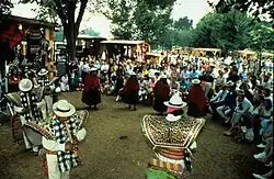 There are many ways to celebrate folk festivals, the most common of which are music and dance performances. In traditional music folk festivals, some folk singers and bands were invited to the event to sing for the audience.[14] These performances include not only the songs that the singers want to sing to the audience, but also some minority musical performances and special forms of music performances. In addition, in many cultural festivals, some competitions for adding atmosphere, such as baking and game competitions will be held at the event. The rides and carnivals prepared for the children are also very common in these festivals. At the festival, it is essential to have local specialties and affordable food for tourists. There are also many excellent craftsmen and jewellery designers who show their designs to visitors for appreciation and sale.