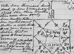 Astrological chart and healing remedy created by Steele for his grandchild's illness included in an August 20, 1888 letter.[111][112]