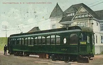 ![]() A 1909 postcard of a Schenectady Limited interurban car | |