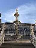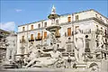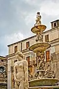 The Praetorian Fountain (Italian: Fontana Pretoria) is a monumental fountain located in Piazza Pretoria in the historic center of Palermo, region of Sicily, Italy. The fountain dominates the piazza on the west flank of the church of Santa Caterina, and is one block south of the intersection of the Quattro Canti. The fountain was originally built in 1544 in Florence by Francesco Camilliani, but was sold, transferred, and reassembled in Palermo in 1574.