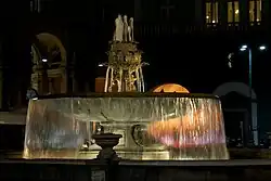 The Fontana del Carciofo or Fountain of the Artichoke is a monumental public fountain in central Naples, located in Piazza Trieste e Trento, just adjacent to the Piazza del Plebiscito. In the 1950s, plans were made to move the historic Fountain of Monteoliveto depicting the Spanish King to this site. However opposition to the move by the Consiglio Superiore delle Belle Arti, led the city to install this modern fountain featuring a vegetable instead and it was inaugurated in 1956.[1] The area is maintained by the adjacent Caffe Gambrinus. The Church of San Ferdinando faces the piazza.