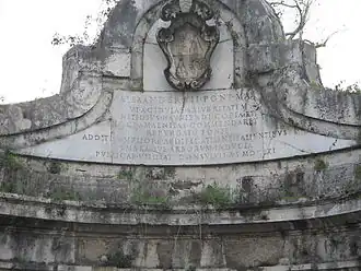 The water was particularly appreciated by Pope Paul V, who commissioned the architect Giovanni Vasanzio a fountain in 1619, as the plaque on a lower wall still reminds; at the time, the source was a simple wall from which water gushed. The fountain was restored by Innocent X.