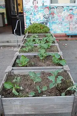 A school garden, or a community urban farm with a youth program, where education about urban agriculture is implemented takes different approaches. One of them being the science route of growing food, which is a more technical way of teaching students about botany and horticulture.[71] Another approach is focused on sharing the political and cultural knowledge of growing food, which looks like teaching students about food justice.[72] Beyond the role of urban agriculture, the debate surrounding these approaches is generally condensed to the question of whether students should be taught political subjects in school settings in order to preserve a neutral learning environment for fear of indoctrinating students towards a certain political perspective.[73]