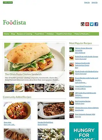 Foodista.com is an online recipe, cooking, and food news source. Foodista is built by both registered community members and anonymous contributors through a structured wiki. With all content available under a Creative Commons Attribution 3.0 license,[1] the site contains articles on recipes, foods, cooking tools, techniques, and food news.