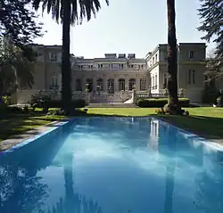 The location of the property was at what was then the edge of the city, and the property was close to the old Hospital de San Borja and the former Pirque railway station. The site was the location of a chalet owned by the Nieto family and the headquarters for a tennis club, which served as the residence of the Ambassador and chancery of Argentina until July 7, 1943, when a fire destroyed the buildings.[2][3][4] The mayor of the city offered the Palacio Cousiño or the Club Militar to house the Argentine diplomatic delegation, but they preferred to be temporarily accommodated in the Hotel Carrera.[4]