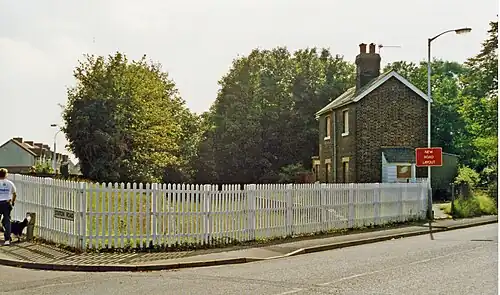 The station opened on 1 November 1865 as Brockhurst by the London and South Western Railway. It was situated on the east side of Military Road. The station's name was changed to Fort Brockhurst on 17 November 1893 to avoid confusion with Brockenhurst station in Hampshire. It originally had two platforms but a third one was built when the Lee-on-the-Solent branch opened in 1894. Most of the traffic handled at the station was naval or military related. Passenger services that ran on the Lee-on-Solent Line ceased on 1 January 1931.[1] The station closed to both passengers and goods traffic on 8 June 1953.[2][3]