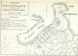 Fort Frederick (1758—1777, earlier Fort Menagoueche, superseded by Fort Howe in 1777) was a British fort at what is now Saint John, New Brunswick, Canada. It was built during the St. John River Campaign of the French and Indian War. It was one of three significant forts which the British built on the major rivers in the Northeast to cut off the natives' water way to the ocean to prevent attacks on the British settlers (see also Fort Halifax and Fort Pownall).[1]