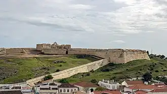 Work on the fort began in April 1641 under the reign of John IV (1640-1656), from 1641 onwards, during the War of Restoration of Portuguese Independence, with the aim of strengthening the defense of this strategic section of the border. It was completed in 1658.[1] Its design aimed to modernize the protection provided by the old medieval castle, transforming the village into the main stronghold of the Algarve at the time.[3] A new set of walls connecting the fort to the town and medieval castle was later built, during the 17th century.[1][2]