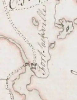 During the French and Indian War, in April 1757, a band of Acadian and Mi'kmaq partisans raided a warehouse near-by Fort Edward, killing thirteen British soldiers and, after taking what provisions they could carry, setting fire to the building. A few days later, the same partisans also raided Fort Cumberland.[10] Because of the strength of the Acadian militia and Mi'kmaq militia, British officer John Knox wrote that "In the year 1757 we were said to be Masters of the province of Nova Scotia, or Acadia, which, however, was only an imaginary possession." He continues to state that the situation in the province was so precarious for the British that the "troops and inhabitants" at Fort Edward, Fort Sackville and Lunenburg "could not be reputed in any other light than as prisoners."[11][12] On 28 September 1759, Mi'kmaw kill two labourers at Fort Sackville.[13]