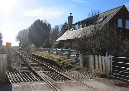 The station site, now a private house, can be seen from the level crossing near Ardullie, north of the A9 road.