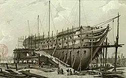 View of Woolwich Dockyard with HMS Nelson on the stocks, 1815