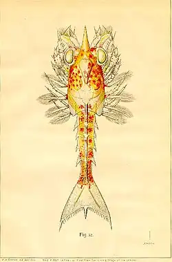 He was approached in 1890 by the United States Commissioner of Fisheries to research and publish a comprehensive report on the American Lobster. Over a period of five years Herrick studied lobsters along the seaboards of Massachusetts, Maine and New Hampshire working from a laboratory at Woods Hole, Massachusetts. The finished work was entitled The American Lobster: A study of its habits and development[2] and appeared in volume 15 of the Bulletin of the United States Fish Commission for 1895. This definitive work includes some 100 detailed drawings of Homarus americanus. Herrick was greatly concerned about the unregulated lobster-fishing industry and that the limited migration of lobsters bedevils recovery of lobster populations once depleted.