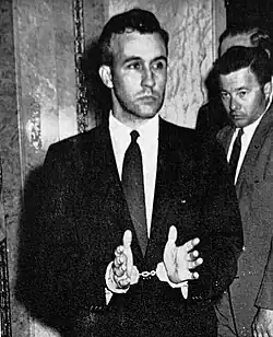 After more than a decade of pursuit by the FBI, Yockey was finally arrested in 1960 after returning to the United States from abroad. En route to Oakland, California, his suitcase had either been lost or had broken open at the Dallas airport, and authorities found several of Yockey's falsified passports and birth certificates.[22][31] When this was reported to the federal government, the FBI tracked Yockey down in Oakland, California, and arrested him.[31] While in prison, he was visited by Carto,[18] who later became the chief advocate and publisher of Yockey's ideas. While he was there, he was staying with the principal of a yeshiva called Alexander Scharf, whom he had met in Reno and intended to give a loan of US$2,000.[56] Yockey was soon after found dead with an empty cyanide capsule nearby while in a jail cell in San Francisco under FBI supervision. Writing after his suicide, the San Francisco Chronicle declared him "as important a figure in world Fascism as we now know."[4]