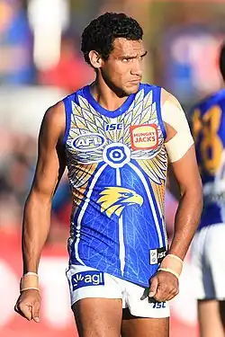 Watson grew up in the small East Kimberley community of Balgo, Western Australia. Watson started off at Claremont and played in the Colts WAFL premiership side in 2013. He made his West Australian Football League debut for Claremont in 2015, and played 19 senior games for Claremont over the 2015 and 2016 seasons. Due to his Indigenous background, the Fremantle Dockers sought permission to register him in the club's Next Generation Academy, but the application was rejected by the Australian Football League on the ground that he had not resided in the Kimberley during the relevant period.[1] Watson was then eligible to sign with any club as a "Category B" rookie, and joined West Coast in November 2016.[2]