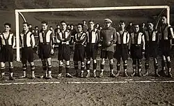 Knowing that football championships would return, Elzo was given the task of putting together a team with the best local players available to compete in the Second Division championship that the Guipuzcoan Federation was preparing.[6][8] Despite having an offer to return to Murcia, Elzo decided to accept Beasain's challenge instead,[6] creating a commission presided by himself that was in charge of gathering a group of players who had belonged to the local club Tercio de Oriamendi, to whom were added, with the logical consent of the authorities, others from the concentration camps in a clear attempt to bring football back to the Beasain as it had been before the war.[8][6] Chaired by Elzo himself, the club was thus reactivated at the end of 1939 as Beasain Fútbol Club, and was then registered with the Guipuzcoan Federation.[6][8]