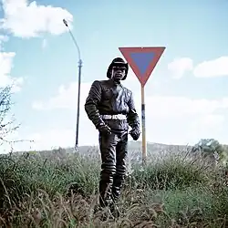 Renegades is Marshall’s first and so far only photographic solo exhibition which immediately earned him national and international attention.[5][6][7] In 2008 Marshall was hired to accompany and shoot a South African heavy metal band at a performance in Botswana's capital Gaborone where he first came in touch with the local heavy metal subculture. In 2009 he decided to make these people the subject of his final year thesis at Tshwane University and finished the series in 2010.[8] It consists of 60 posed environmental portraits and is meant to represent and transmit ideologies of heavy metal subculture in Botswana.[9] The portraits are shot with two analogue cameras, a Hasselblad 500 CM and a Hasselblad 500 EL/M on Fujichrome Provia 100F film.[10]