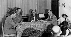 Ceremony in the Jerusalem Music Academy. From left: Josef Tal, Alexander Dushkin, Frank Pelleg, Moshe Smoira, Thelma Yellin