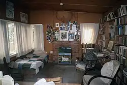 Sargeson lived in the house until his death in 1982 and wrote many of his works there.[6] He is said to have enjoyed writing, gardening and entertaining guests at the house, especially fellow writers.[1] Many New Zealand authors would visit and write at the house with Sargeson, to the point where C.K. Stead described the property as "the still point around which the literary consciousness of New Zealand seemed to revolve".[7][8] Janet Frame lived at the property between 1955-1956 while she wrote her first novel, Owls Do Cry.[9]
