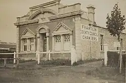 In 1915 the approximate rateable value of the county was £3,500,000.[2] In 1923 Franklin County covered 620 sq mi (1,600 km2) and had a population of 9,730, with 183 mi (295 km) of gravel roads, 252 mi (406 km) of mud roads and 400 mi (640 km) of tracks.[3]