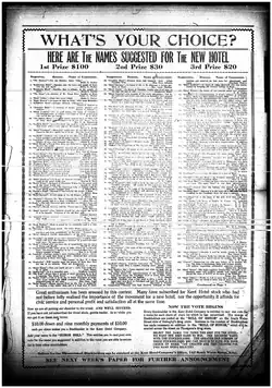 Page from a 1919 Kent Courier with some of the submitted name suggestions for the hotel