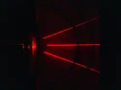 The spacing of the fringes at a distance z from the slits is given by[18] where d is the separation of the slits.