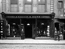 Frazer & Sons was a clothier and tailor in the 19th and 20th centuries, based in Perth, Scotland. Used by the high class of the local society, the shop, located at 49 High Street,[1] received a royal warrant of appointment in the 1930s.[2]