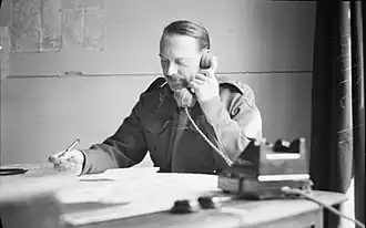 In February 1942, Dorman-Smith, by this time Deputy Chief of the General Staff (DCGS) at GHQ, recommended de Guingand for the vacant post of Director of Military Intelligence, Middle East, with the rank of brigadier.[34][35][36] The appointment of de Guingand, an officer with no experience in intelligence, said much about the state of intelligence in the British Army at the time, where it was assumed that staff college training and a good brain were all that was required.[37] Nonetheless, de Guingand ultimately proved to be very successful in this role.[38] He selected two promising young officers at GHQ, Captain Bill Williams and Major James Ewart, to serve on his staff.[39] Ewart could speak German fluently and Williams, as a trained historian, was accustomed to drawing information from disparate sources together to produce a larger picture.[40] According to de Guingand, "Ewart and Williams were an ideal combination. They understood each other perfectly. Both had first-class brains, both were university dons and hated soldiering as a profession!"[41]